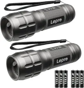 Dos linternas impermeables y antideslizantes a pilas, con zoom y luz para hasta 150 metros.