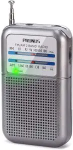 Pequeña radio con sintonizador FM y AM de funcionamiento a pilas.